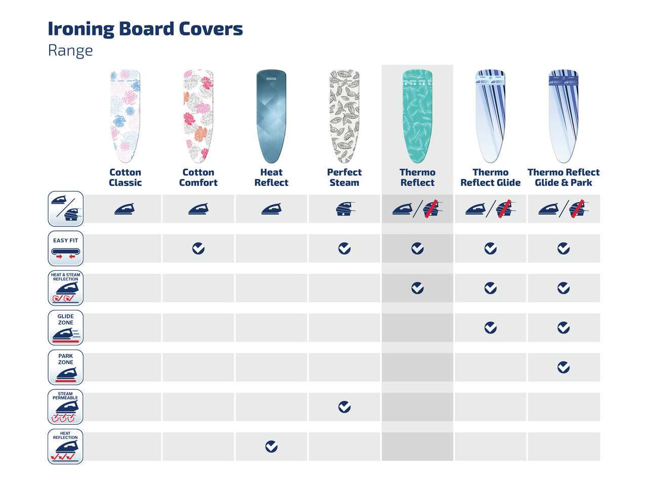 Lösning: Med Thermo Reflect-teknologin minskar stryktiden genom att reflektera värmen och ångan tillbaka mot plagget. - Problem: Överdrag som inte sitter stadigt.