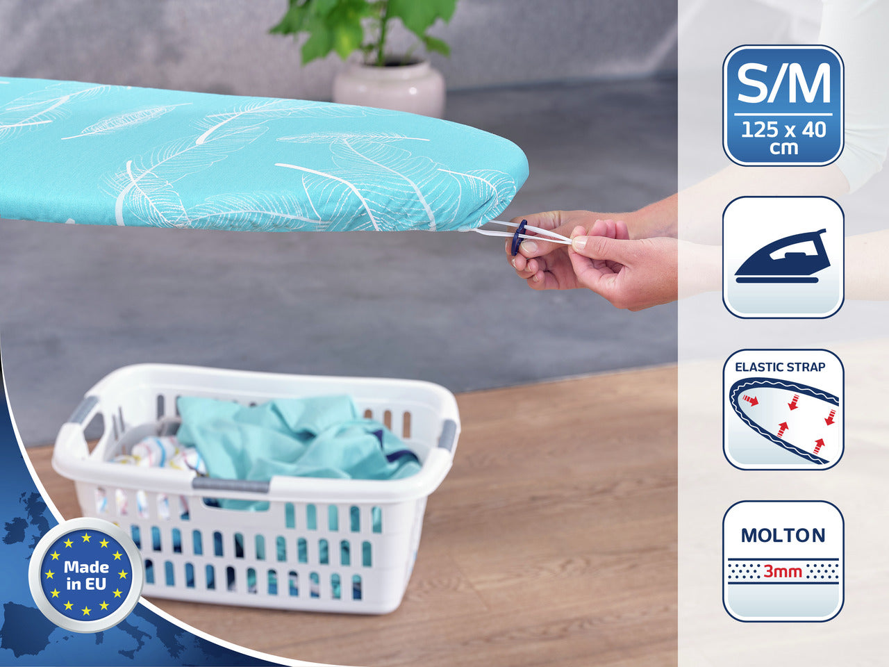 - Komfortabel vaddering: 3 mm tjock molton-vaddering ger en bekväm och skonsam strykupplevelse.
