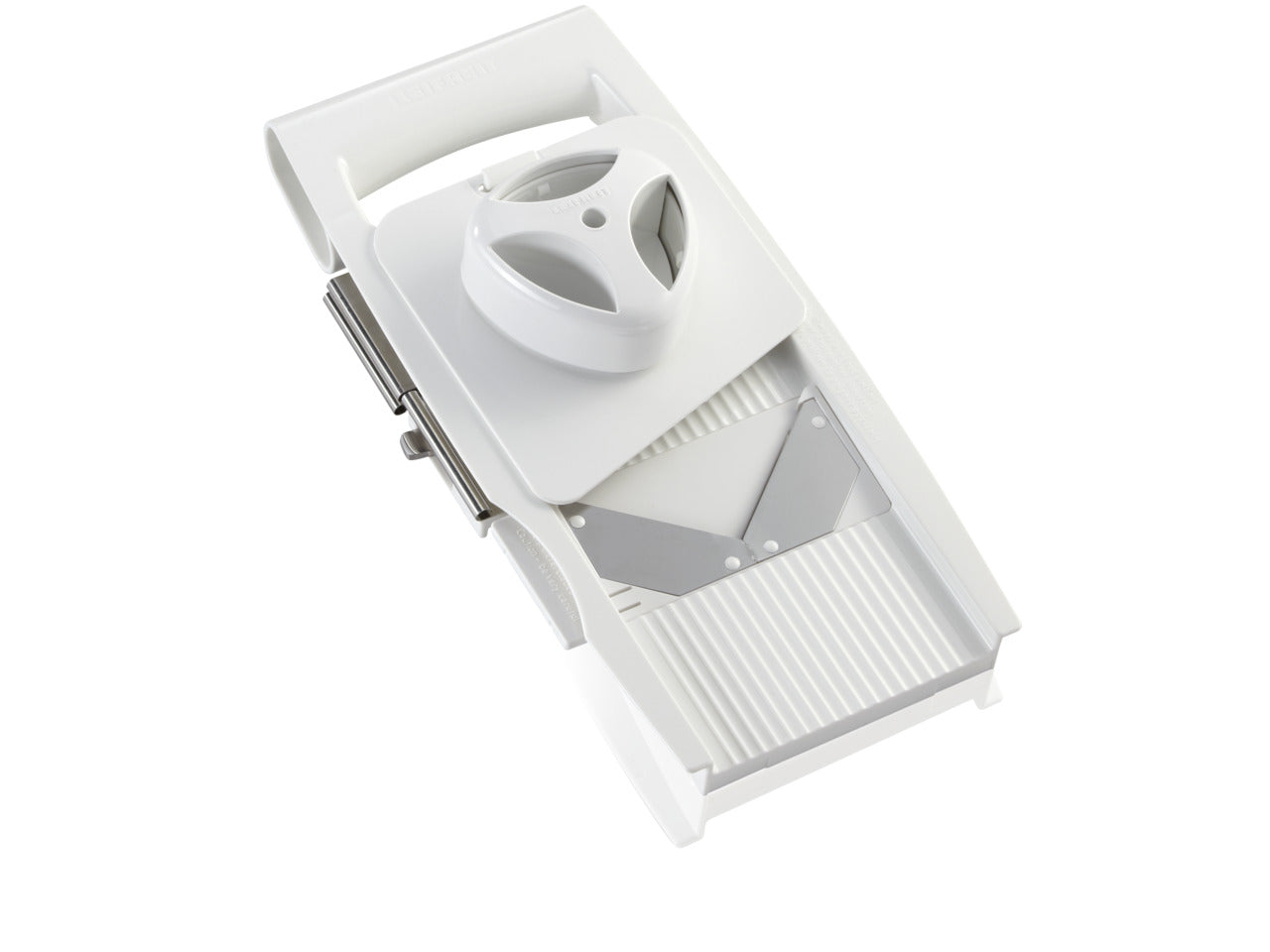 Oavsett om det handlar om att skära, riva eller skiva i köket kan Leifheit Mandolin ge dig perfekta resultat. Till och med tomater kan skäras utan problem tack vare V-infästningen. De diagonala skärkanterna på bladet minskar motståndet från tomatens skal och garanterar helt jämna och regelbundna skivor.