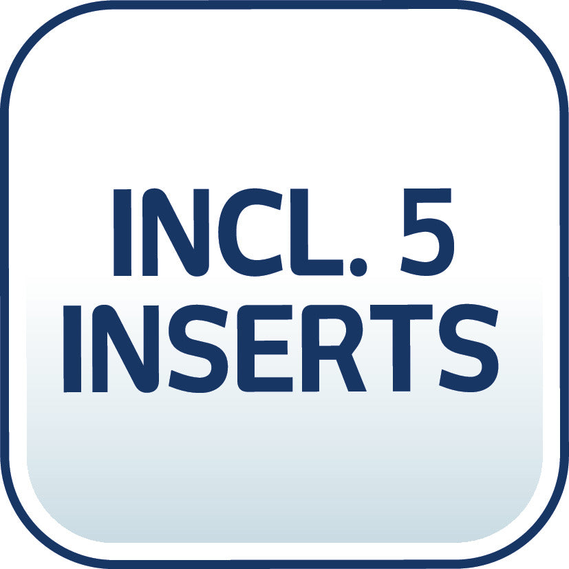 Mångsidig Användning: Inkluderar insatser för att skära, riva och skiva olika typer av livsmedel.