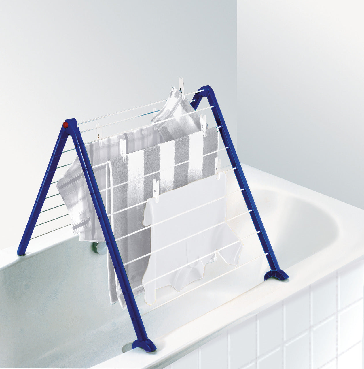 Leifheit Pegasus Bath 110 är en kompakt och platsbesparande torkställning som gör det enkelt att torka tvätten direkt på badkaret utan att ta upp extra utrymme.