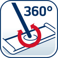 Mopphuvudet omsluter sidorna av moppen och rengör därmed hörn och kanter samtidigt som golvet moppas. Den flexibla roterande leden och det helt böjbara skaftet gör det enkelt att rengöra även de mest svåråtkomliga ställen, som under byråer, skåp och sängar. För att enkelt vrida ur moppen, låser du bara upp golvmoppen med fotmekanismen, placerar mopphuvudet i Combi wringer och pressar ner golvmoppen. Utan att böja dig och utan att smutsa ner händerna är mopphuvudet redo för nästa omgång. Moppens torkbredd är 33 cm.