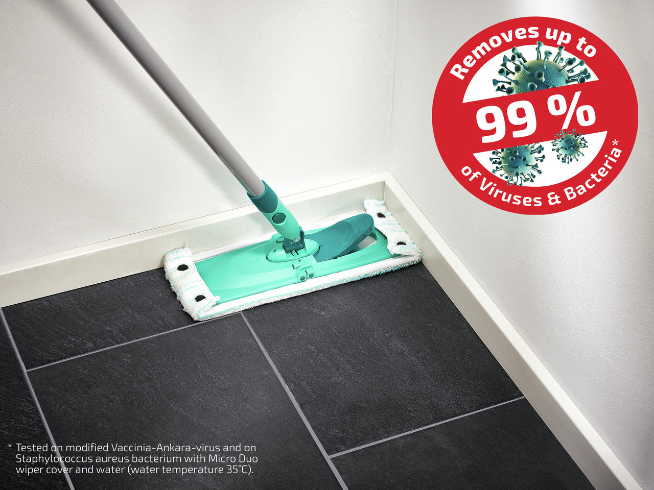 - Hållbart mopphuvud: Micro duo-mopphuvudet kan tvättas upp till 200 gånger i maskin vid 60°C.