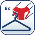 - Extra hängare: Åtta krokar på armarna för skonsam torkning av skjortor och blusar.