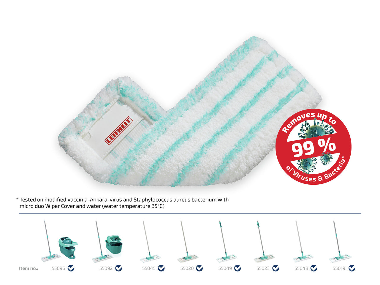 - Hållbart moppöverdrag: Micro Duo kan tvättas upp till 400 gånger i tvättmaskin vid 60°C.