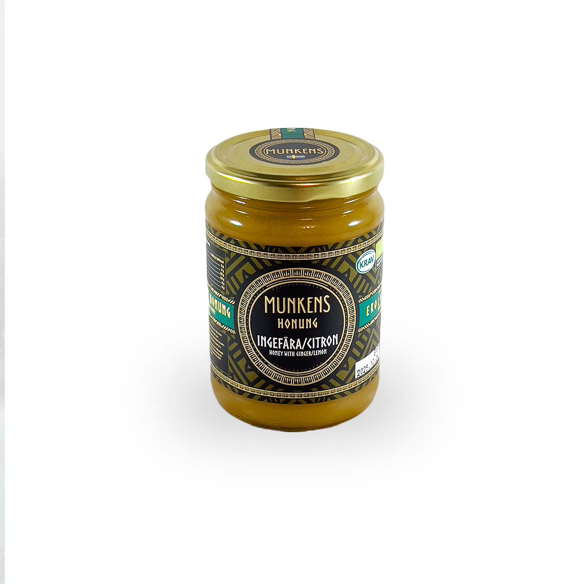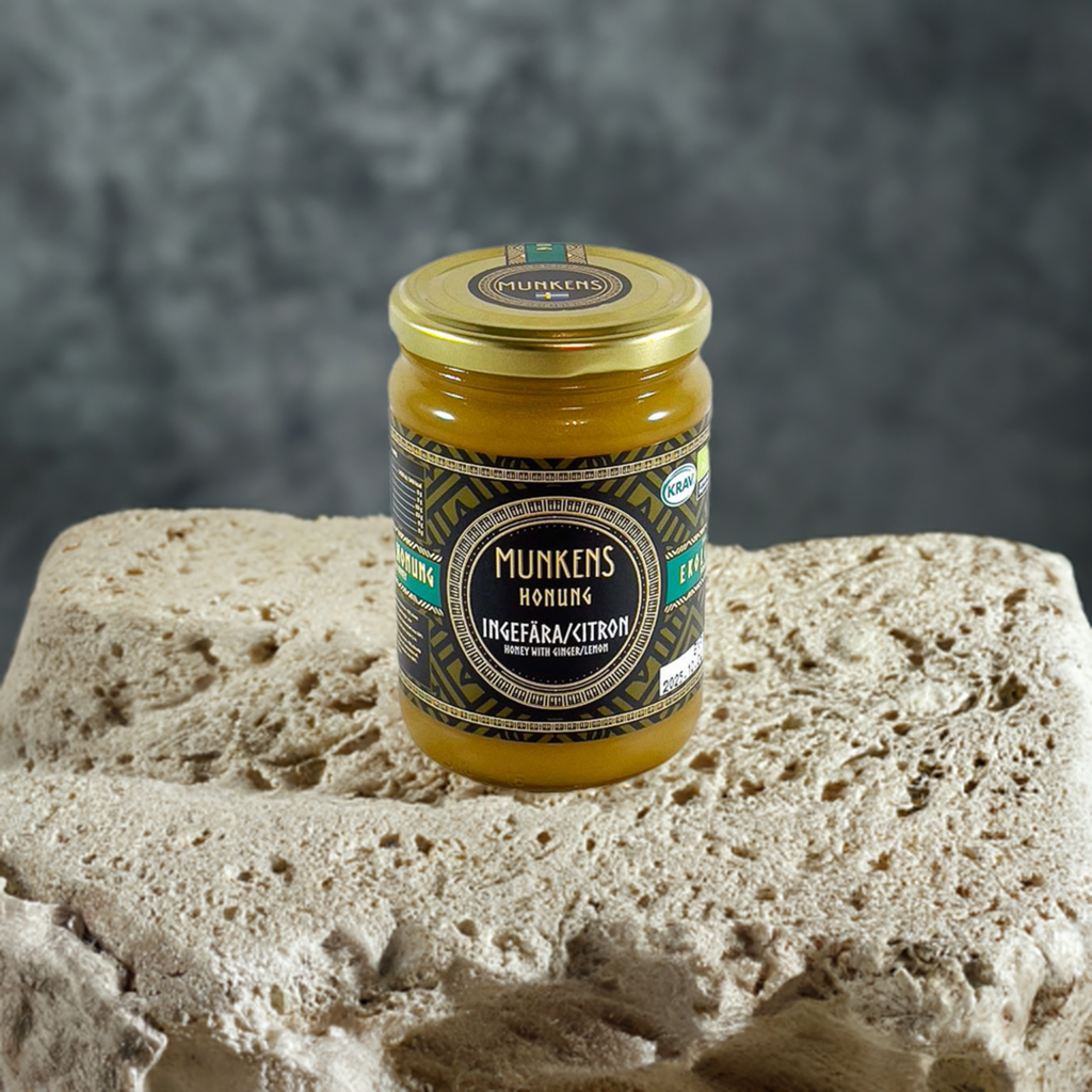 Munkens Honung Ingefära & Citron – Svensk kallrörd rå honung, 500g