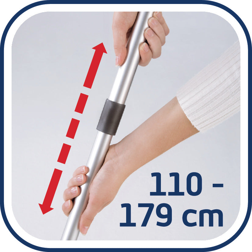 - Teleskophandtag: Handtaget är justerbart från 105 cm till 175 cm, vilket gör det möjligt att anpassa längden för olika användare och arbetsmiljöer.