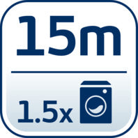 - Flexibelt torkutrymme: Tre individuellt utdragbara linor som ger totalt 15 meter torklängd.