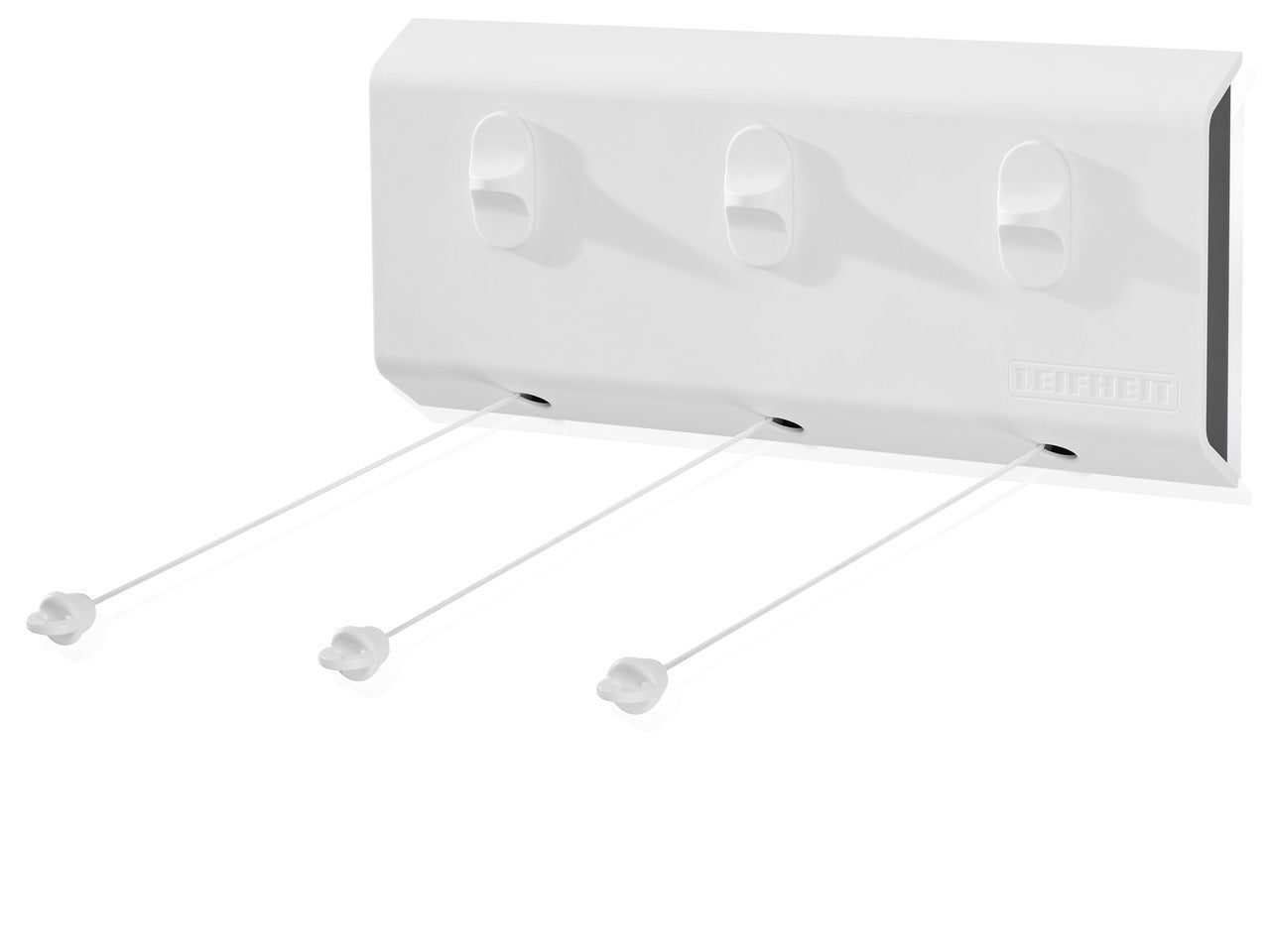 Leifheit Wall Dryer Rollfix 150 Triple Longline erbjuder maximal flexibilitet för att torka din tvätt. Med tre individuellt utdragbara linor, som tillsammans ger en total torklängd på upp till 15 meter, kan du enkelt torka 1 till 2 tvättmaskinsladdningar. Linornas längd kan justeras beroende på rummets bredd och det tillgängliga utrymmet, vilket gör den idealisk för både små och stora tvättmängder.