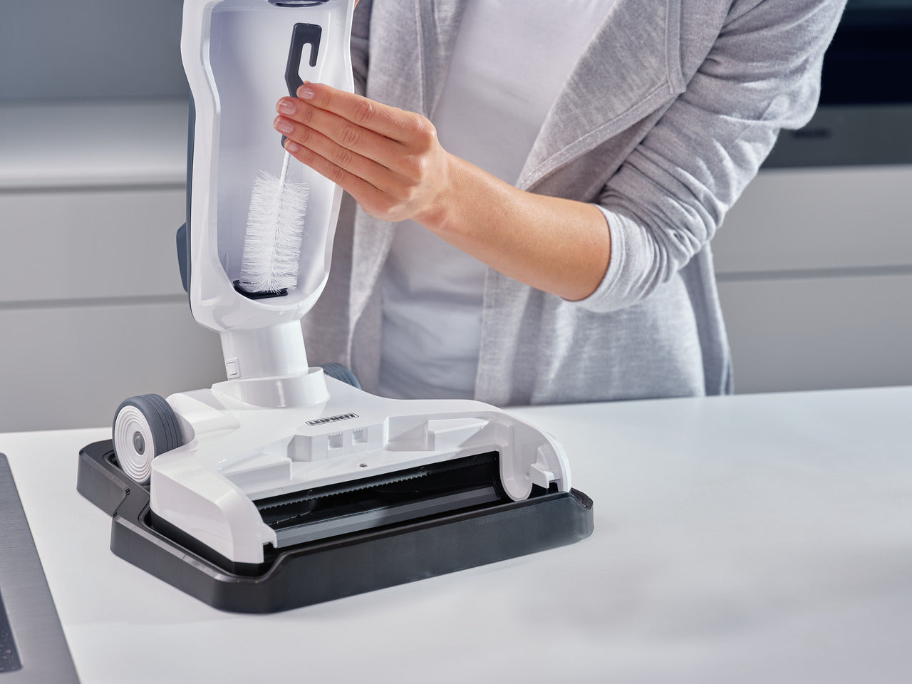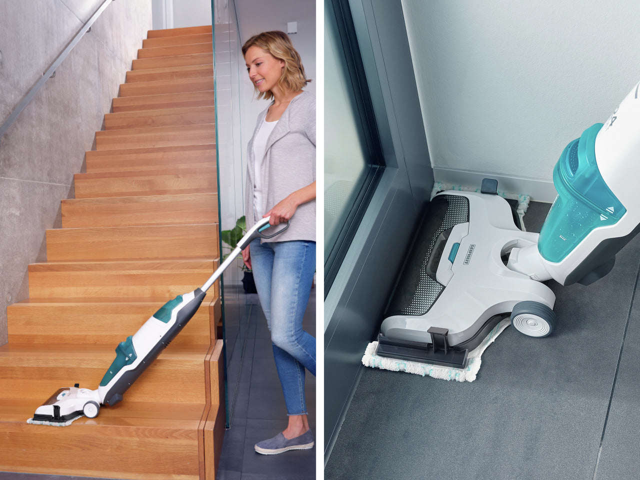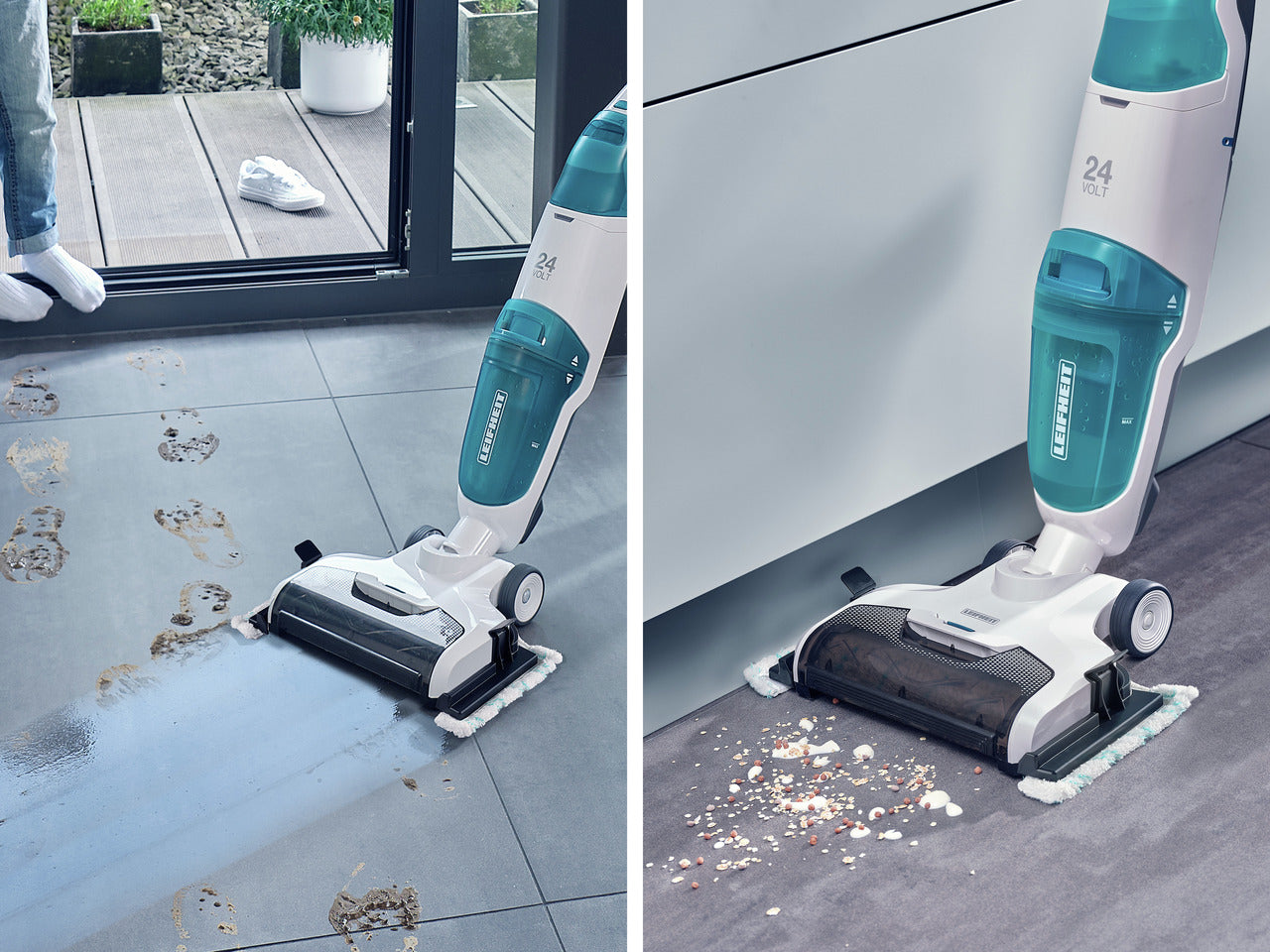 - Kombinerar dammsugning, moppning och torkning i ett steg.
