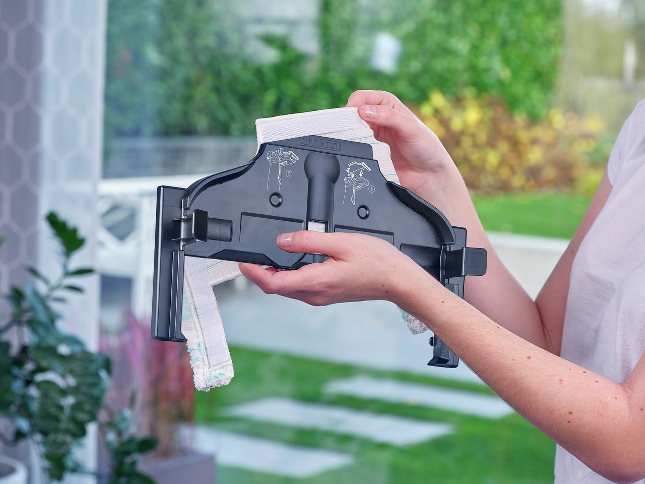 - Professionell rengöring in i varje hörn tack vare hörnglider med Micro-Duo moppöverdrag.