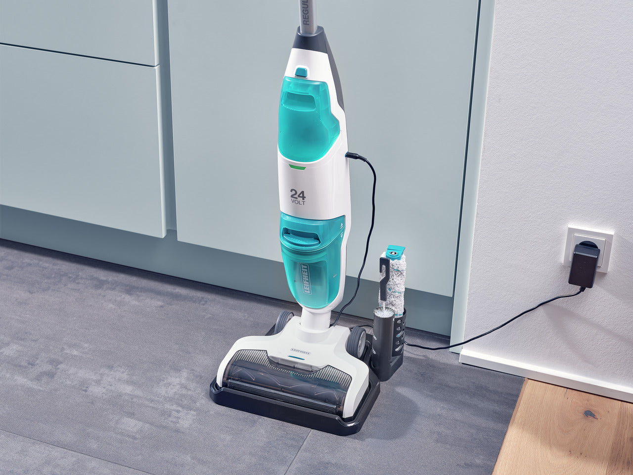 Regulus Aqua PowerVac Pro från Leifheit är den ultimata skaftdammsugaren som kombinerar dammsugning, moppning och torkning i ett steg, vilket sparar både tid och ansträngning. Utrustad med en kraftfull 24 V litiumjonbatteri, levererar denna skaftdammsugare en drifttid på upp till 26 minuter, vilket ger en imponerande yttäckning på upp till 77 m² per laddning.