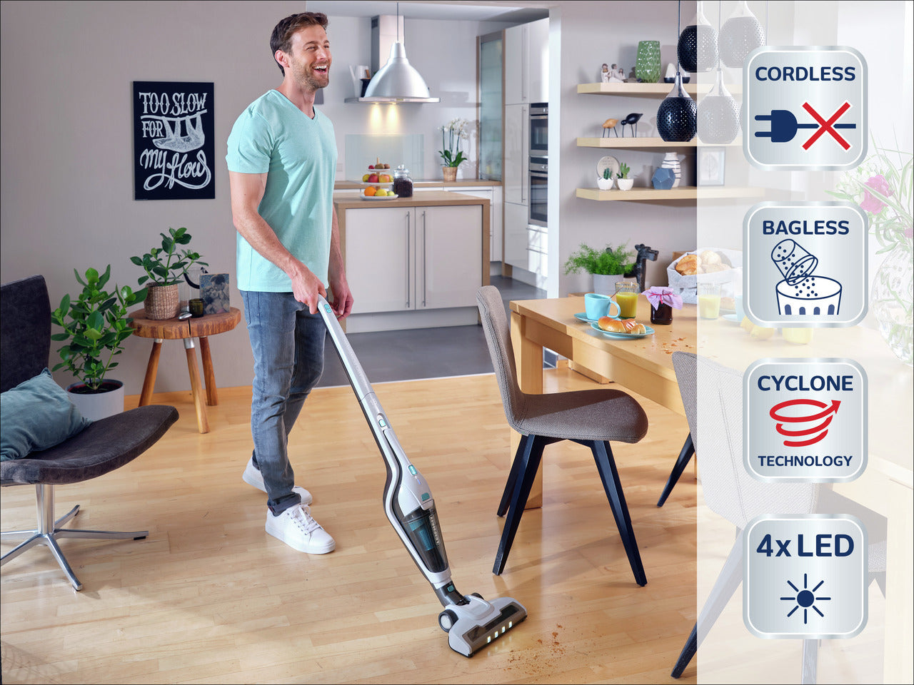 - Mångsidig 2in1-design: Använd som skaftdammsugare eller handdammsugare.