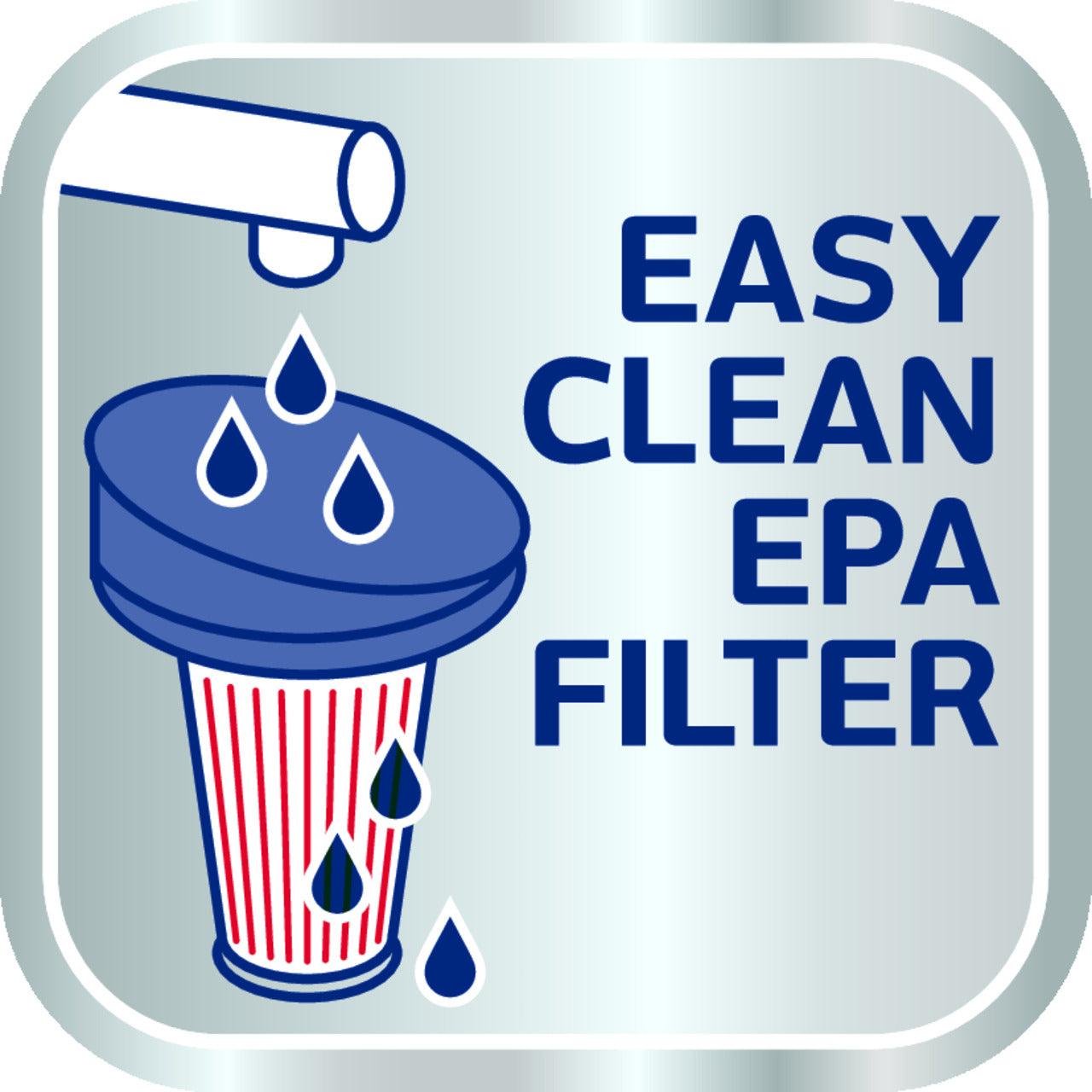 Den cyklonteknologi som används i denna dammsugare ger kraftfull sugkraft utan behov av dammsugarpåsar, vilket sparar pengar på sikt. Tack vare EPA-filtersystemet renas luften från damm innan den släpps ut igen. Filtret kan enkelt rengöras under rinnande vatten.