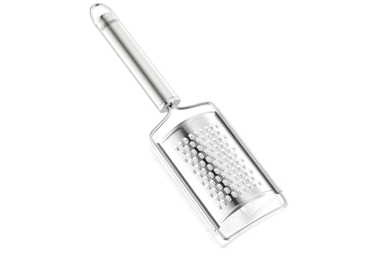 Den slanka och eleganta designen, tillsammans med det högkvalitativa rostfria stålet, gör dessa köksredskap från Leifheit till en påminnelse om all den hållbarhet och glans som tidlös silver representerar. De är perfekta för servering vid bordet och har imponerande hantering: Det ovala handtaget på muskotrivjärnet, som också är lämpligt för parmesan, ingefära och choklad, sitter bekvämt och säkert i handen. Det högkvalitativa rostfria stålet ger behaglig stabilitet. Med praktiskt hängöra för användning med kroklist.